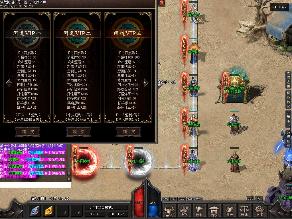 9月28号-洪荒问道/多职业/装备附魔/装备鉴定/天赋修炼/内容非常丰富吸金。